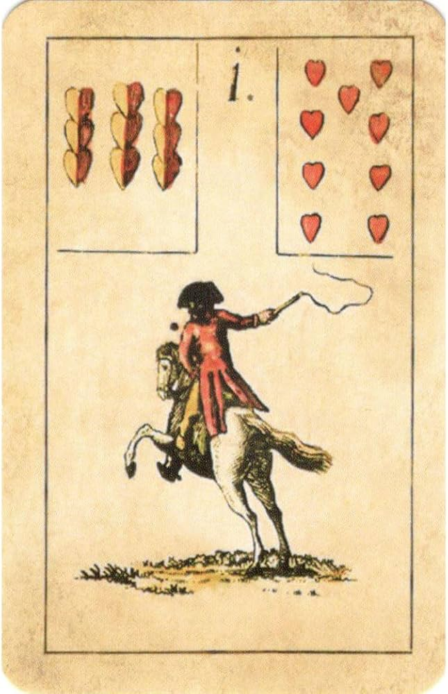 Dica de interpretação: Do ponto de vista técnico, autores clássicos do Lenormand concordam que O Cavaleiro não deve ser interpretado isoladamente como “resultado final”, mas como gatilho de acontecimentos. Portanto ele é o impulso inicial da narrativa do jogo.